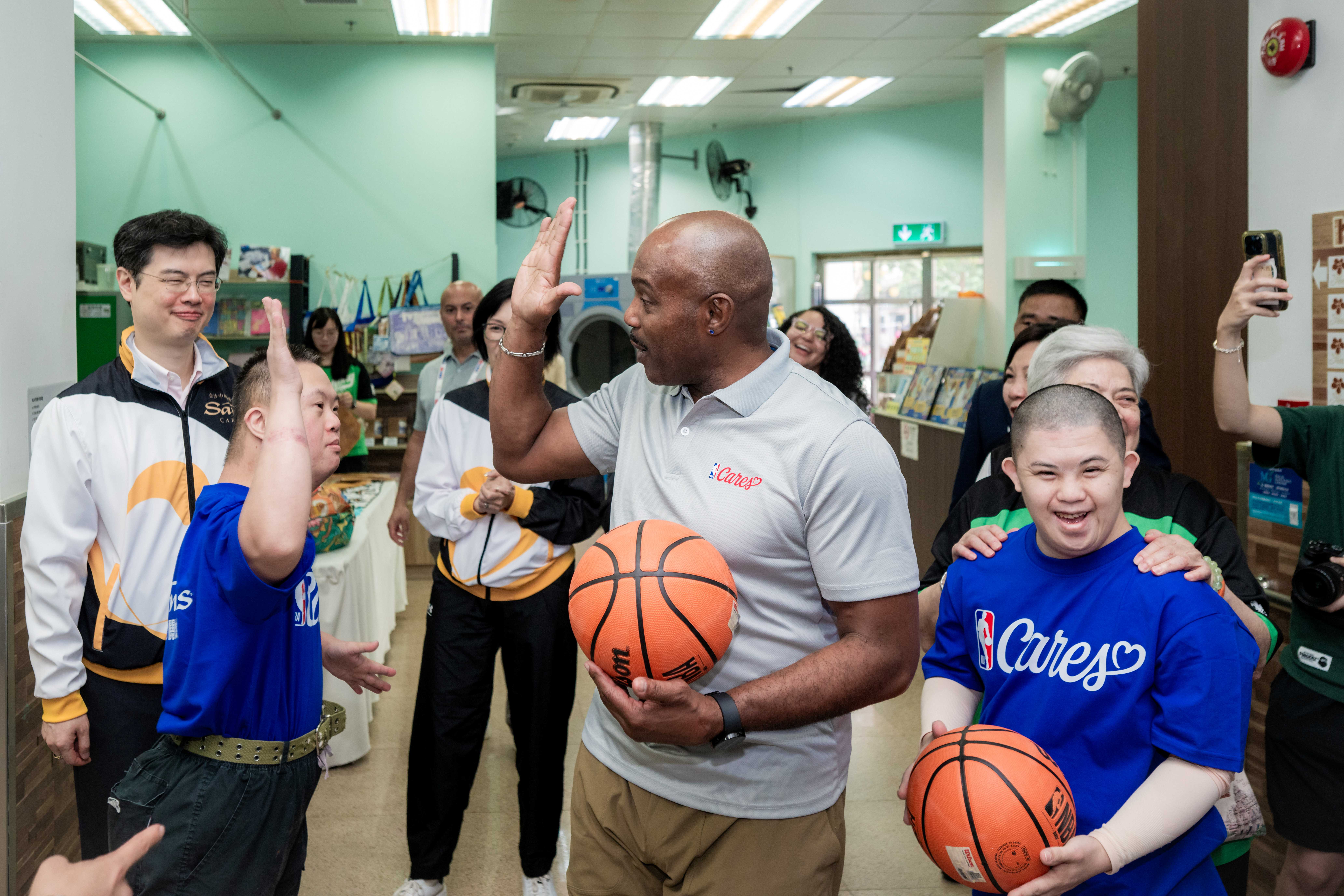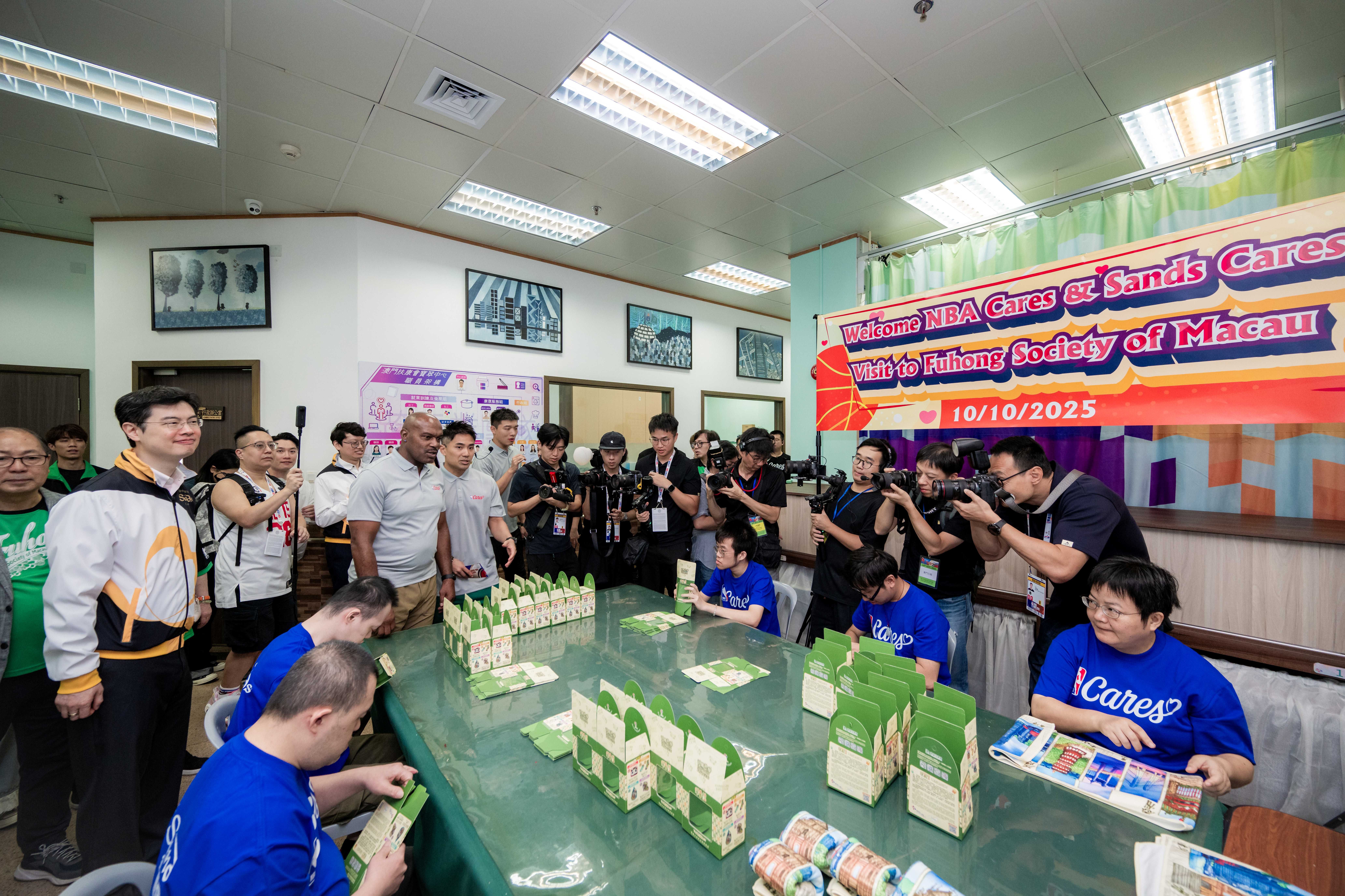 (澳門,2025年10月10日) – 適逢NBA中國賽2025於10月10及12日於威尼斯人綜藝館火熱開動,由NBA 關懷行動(NBA Cares)與金沙關懷攜手舉辦的「NBA關懷行動x金沙關懷籃球公益周」於賽事舉行當日在澳門扶康會寶翠中心舉行暖心午餐社區分享活動,邀請NBA傳奇球星添‧夏達威(Tim Hardaway)親身向本澳弱勢社群送上關懷。活動約240人參與,當中包括金沙中國有限公司行政總裁兼執行董事鄭君諾、金沙中國關懷大使、「NBA關懷行動‧女生主場」計劃的鄉村老師、姚基金義工及澳門扶康會成員。