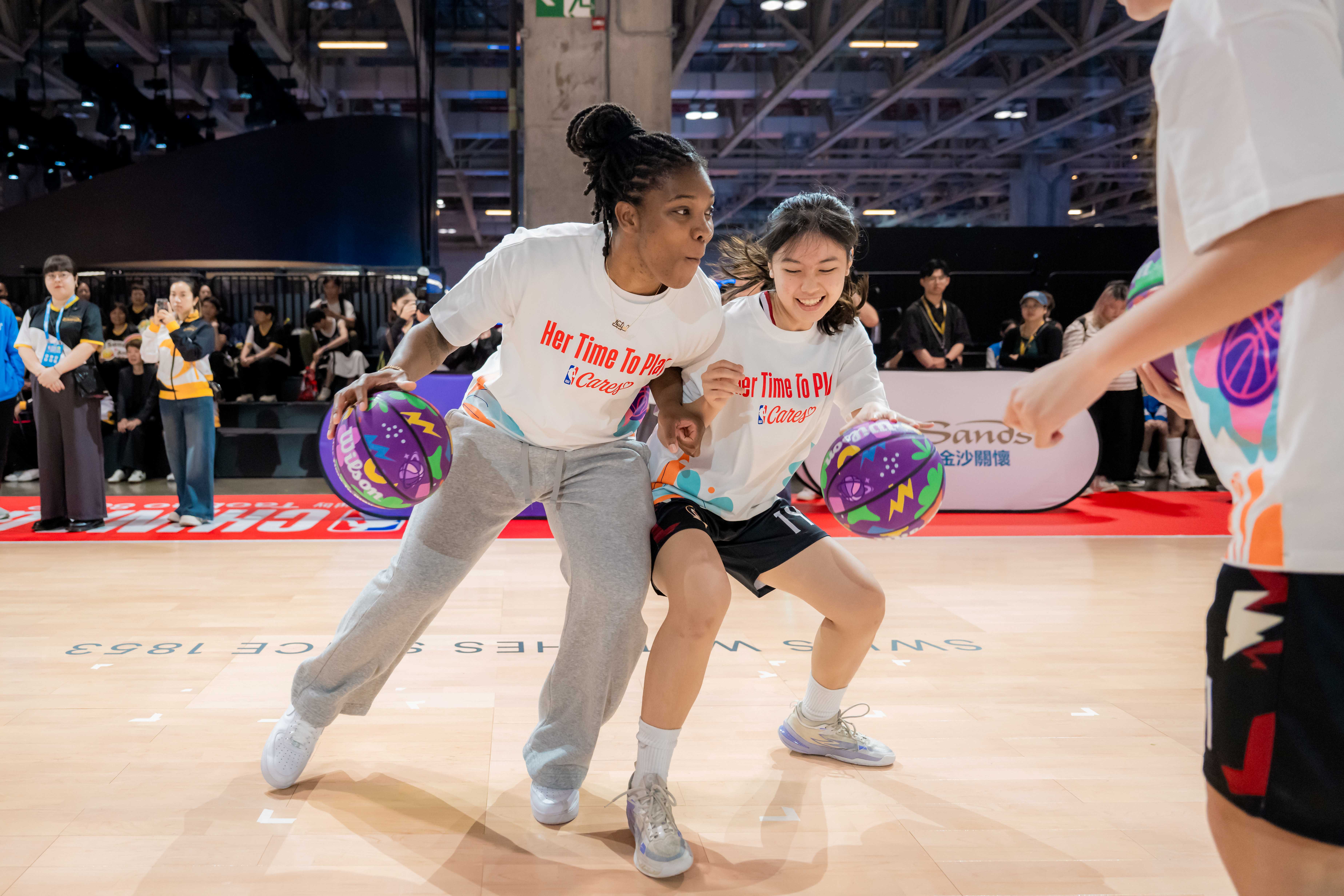 (澳門,2025年10月12日) – 在NBA中國賽2025於10月12日在威尼斯人綜藝館上演壓軸之戰當日,由NBA 關懷行動(NBA Cares)與金沙關懷攜手舉辦的「NBA關懷行動x金沙關懷籃球公益周」亦進行壓軸活動──「女生主場」籃球交流活動。活動於澳門威尼斯人金光會展A館內的NBA House舉行,邀請NBA傳奇球星迪朗‧威廉士(Deron Williams)及現役美國職業女子籃球聯賽(WNBA)球員Myisha Hines-Allen與逾30名本地校內女子籃球隊成員及「NBA關懷行動‧女生主場」計劃的師生進行體育互動及交流,為公益周畫上完美句號。
